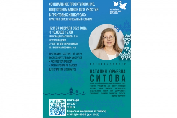 Подготовка заявок для участия в грантовых конкурсах состоится в региональном центре «Семья» на семинаре-практикуме «Социальное проектирование».