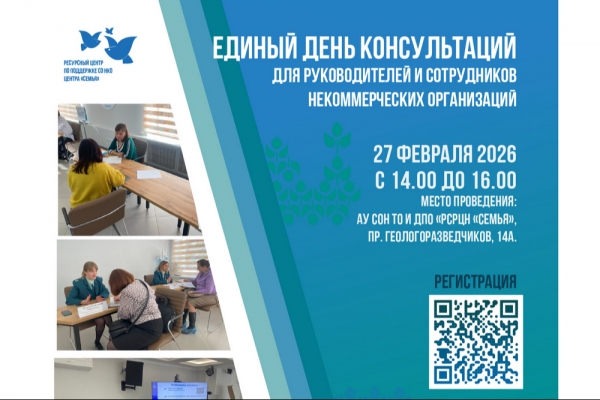 27 февраля 2026 года Региональный центр «Семья» при поддержке Департамента социального развития Тюменской области проводит единый день консультаций для руководителей и сотрудников некоммерческих организаций, с экспертами государственных органов.