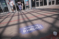 "За покупками - в маске", - напомнили любителям шопинга в Тюмени активисты "Молодой гвардии". Такую надпись они нанесли рядом с крупными торгово-развлекательными центрами: "Гудвином", "Галереей Вояж", "Кристаллом" и "Премьером".
